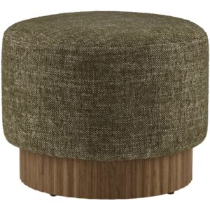 Olive Boucle Fabric and Walnut Wood Ottoman.