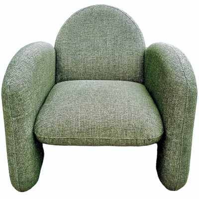 Mid century modern dull sage accent chair, with a textured linen fabric.