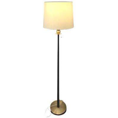 Tripod black and gold floor lamp with a white shade. Some details may differ.