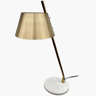 Tripod black and gold floor lamp with a white shade. Some details may differ.