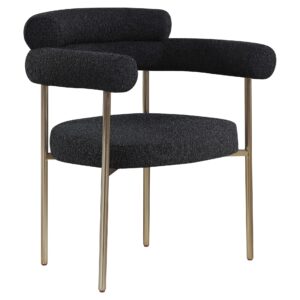 A padded soft black boucle fabric chair with gold/brass metal legs.