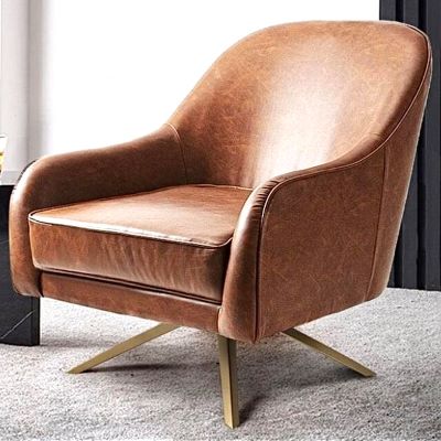 Faux leather lounge chair with a unique black frame for a base.