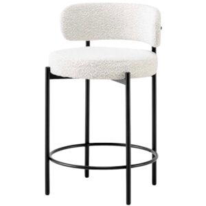 Counter Stool with dark brown faux leather seat and black metal legs.